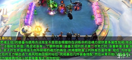 在训练阶段玩家将会获得【不完美的灵魂王冠】,棋子带上后将会提升攻击力、生命值和法强,并在羁绊列表的最下方的非独有羁绊中算作两个棋子。