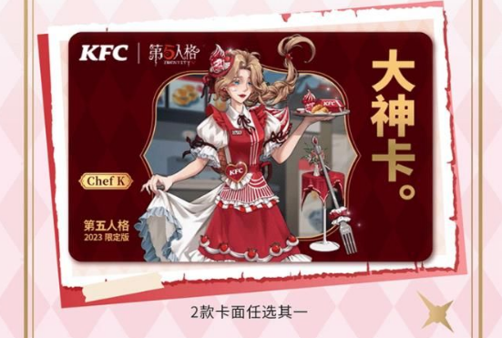 第五人格肯德基大神卡怎么领?第五人格肯德基联动2023活动正在开启中,不少用户针对这个活动都非常的感兴趣,而且据说参与这个活动还有机会获得肯德基2023版大神卡第五人格限定版哟,让大家可以享受到吃肯德基的更多优惠,那么第五人格肯德基大神卡怎么领?下面小编就给大家介绍下详细的领取攻略,一起来看看吧。