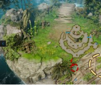 分别就是:石灯位置、毛毛兽位置和峭壁位置。