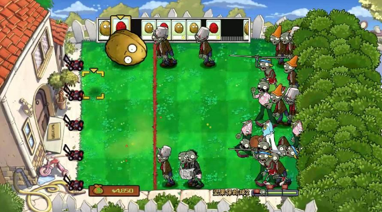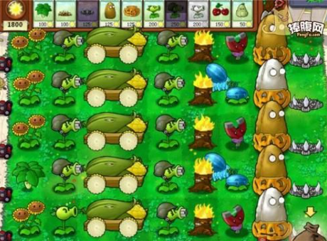 2.开局阵容,如下图。留两百个阳光,以免蒜头或者南瓜头被吃掉。