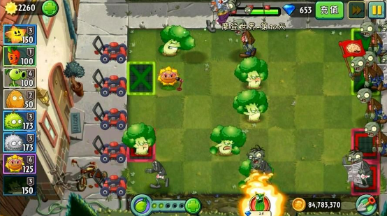 1.为了更快赚到金币,选择《谁笑到最后》这个模式,该模式的设定为:开局拥有5000阳光,且每过一波后获得250阳光、可以提前摆阵,植物无冷却,这样可以使阵容快速成型了,但不能选择向日葵、阳光蘑菇和免费的2种蘑菇。僵尸防御高的有铁桶、橄榄、铁珊门。特别要注意小丑僵尸,被炸掉一个植物就损失惨重了,所以要将其快速解决掉。如下图为选择的植物,为了赚金币,缺一不可。