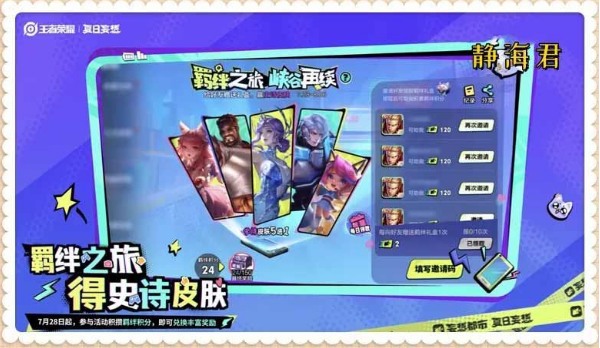 活动期间,通过邀请好友回归王者峡谷获得羁绊积分,累计羁绊积分达到指定数值获得羁绊之旅头像框和史诗皮肤5选1宝箱!回归的召唤师可以获得专属羁绊礼盒哦;