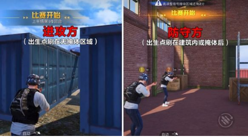 4、进攻方和防守方的出生刷新点是不一样的,进攻方出生点在无掩体区域,而防守方则相反,会刷新在建筑内和有掩体的位置。