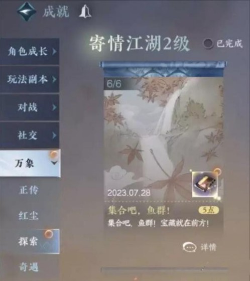 开启六次悬浮宝箱后,可以在收藏—成就里的万象-探索中领取趣味技能:群鱼簇。