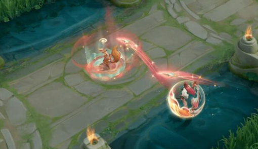 召唤出多颗法球,以莲花香炉为媒介,释放出去的法球会有很长的拖尾。