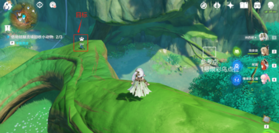 4.暝彩鸟2号点位如上图目标点位所示,在高处的树干上,靠近暝彩鸟后点回收即可。