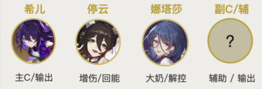 二、四星配队:希儿+停云+娜塔莎+副C或者辅助。