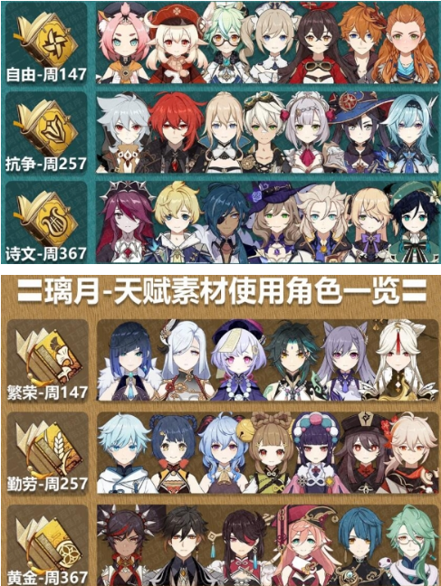 ◆旅行者所需的天赋书比较特殊,每种元素的的旅行者都是需要当前元素国家的三种天赋书,天赋每升三级循环一次,如风主就是蒙德天赋书自由→抗争→诗文→自由的循环。