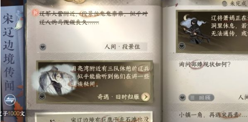 1、玩家根据传闻指引来到宋辽边境辽军大营找到金毛犬段景柱,与他对话解锁任务。