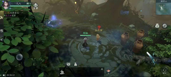 在片头渡劫失败后我们会轮回到北冥山这里。跟大部分游戏一样,任务npc头上永远是一个红色问号,直接交互即可。
