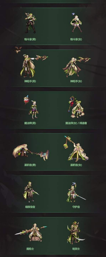 2、各个职业持有的武器也根据其特征变化,将绿色和咖色进行了完美的融入;