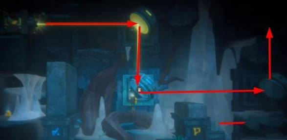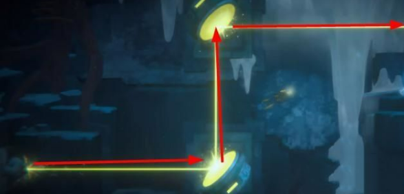 4、最后前往左下方,将镜面光线调整成下图,可以获得冰层后面的物品。