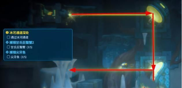9、随后等待入口的冰层熔融化,进入内部就能完成通过冰河通道任务,并开启BOSS挑战【逃避巨型嘉顿】。