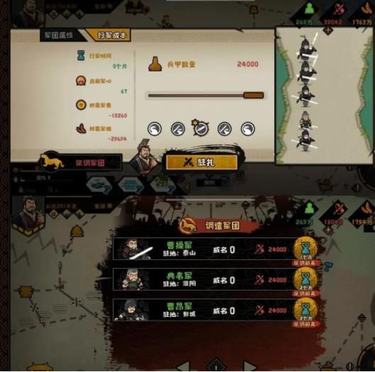注:创建军团至少需要一位武将,同时要地只能驻扎一队军团,而治所数量没有限制。