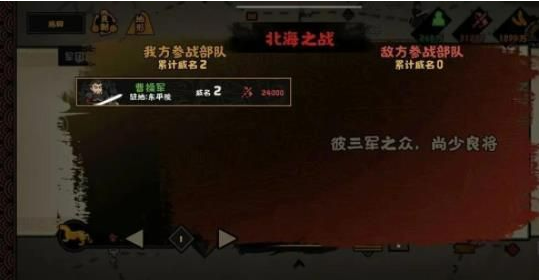 如下图所示,当我使用初始士兵进攻治所北海时,驻扎在附近要地的曹操军团会提供威名等级buff,同时,我方也可使用对应军团中的武将进行进攻。