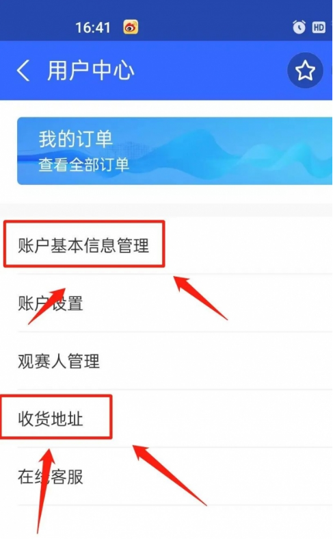 3. 完成注册后,回到票务通的主页面,点击【用户中心】,填写观赛人信息和地址,提前填好信息抢票快人一步!