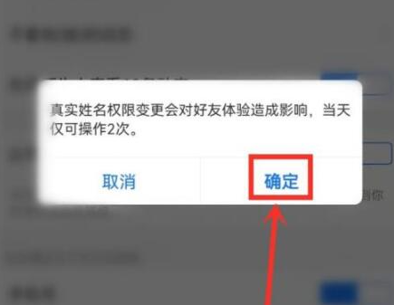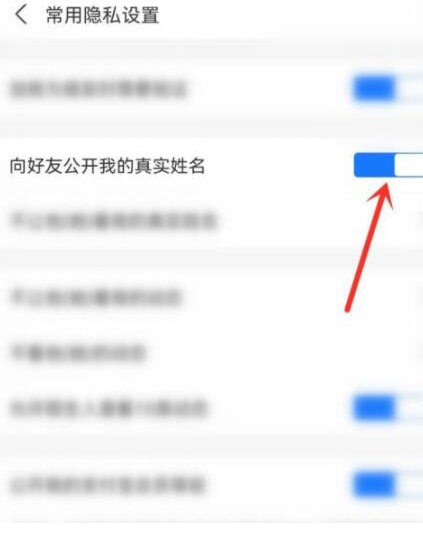 5、关闭“向好友公开我的真实姓名”右侧的按钮