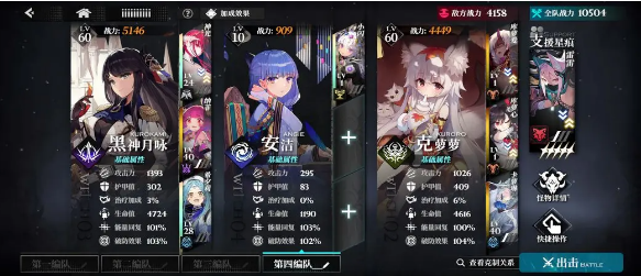 因为灼烧命中率非常丢人,所以能降抗能加效果命中的卡萝琳是最优选,以上三人需要绑在一起。