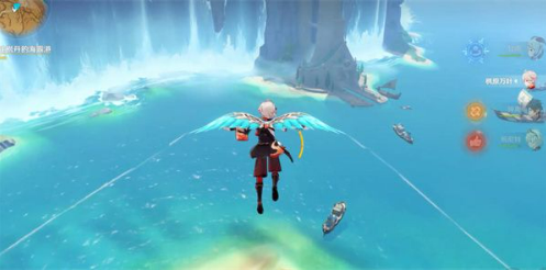 6.开启完第一处神像后,往身后看,能看到一艘船,和船长对话就可以乘坐观景船抵达枫丹主城了。