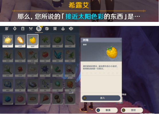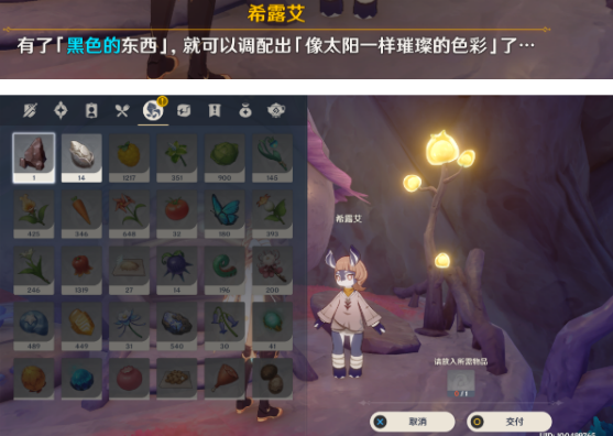 1、玩家在海沫村与希露艾对话,回答她的问题,然后选择任意一件【金色的物品】交付给她;