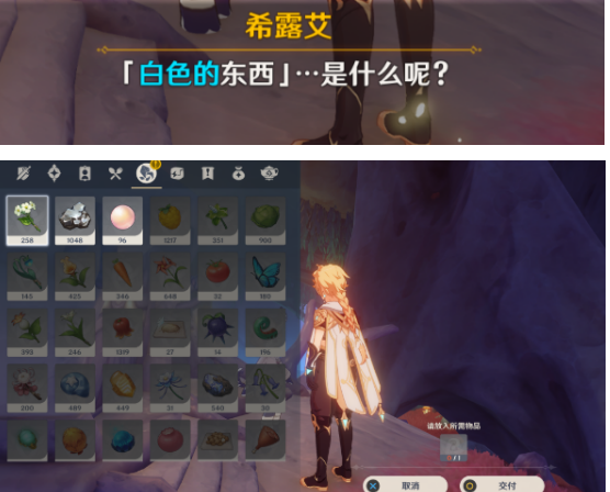 2、之后回答她的第二个问题,选择任意一件【白色的物品】交付给她;