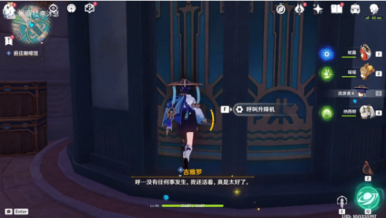 3、看完剧情之后到达一个升降机的门口,需要先完成对话,然后乘坐这个升降机到一层;