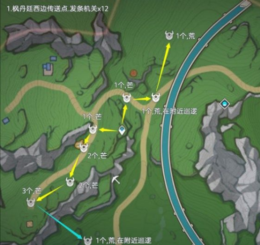 重要提示:黄色路线为高效率刷取路线、推荐去;