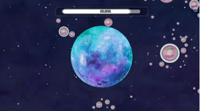 3、当星球从红色变成彩色后,我们就能进行吞噬了,可以选择左侧的气流大小,过小在前期可能推不动其他星球。