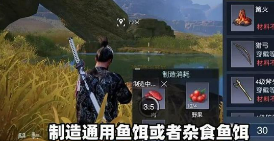 1、首先玩家需要进行鱼饵的制作,这里制作杂食鱼饵或者是通用鱼饵,接着前往科勒矿山等区域。