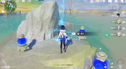 3、解谜完成之后,要飞到湖的中心,拾取这里的小水滴;