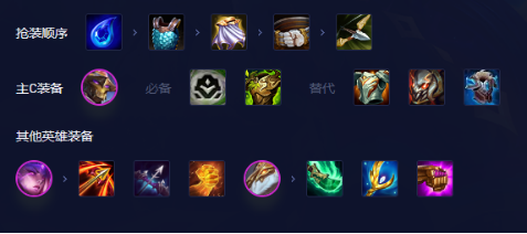 副C位卑尔维斯:物理输出装备都可,不算吃装备最优是飓风,飓风过墙能快速打到敌方后排,与索尔的群体技能配合,更容易收割敌方残血棋子。第二件建议轻语,更容易突破敌方前排。