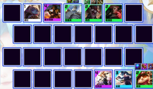 1、阵容组成:拼多多、拉克丝、娑娜、波比、嘉文四世、加里奥、克烈、斯维因