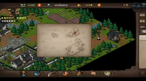 5.从杭州(30,0)进入东江村,将羊皮地图给予(8,4)的船夫,一番对话后船夫不想出海但提示可以自行出海,但需要船只。