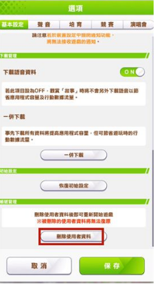 在最下面这一栏的账号管理中,点击【删除使用者资料】,并且确定删除后,就能将数据给清除掉了。