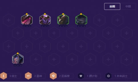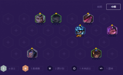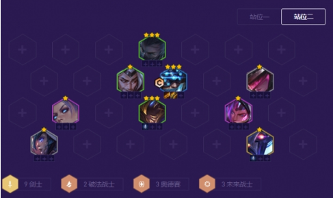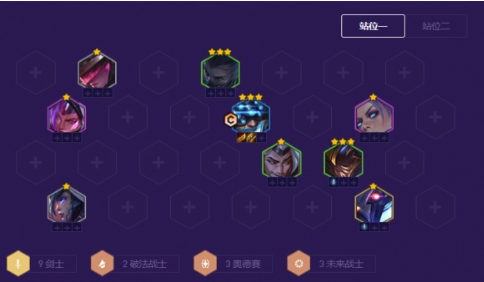 凑出六剑士,三奥德赛,中期剑圣二星有装备保连胜是比较稳定的,不过要注意站位。