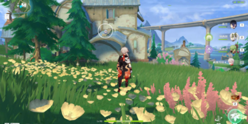 1、灰蓝伞雀1:传送苍晶区南方向锚点,往地图的东方向走;来到房屋的背面,射击在屋檐上的灰蓝伞雀1。