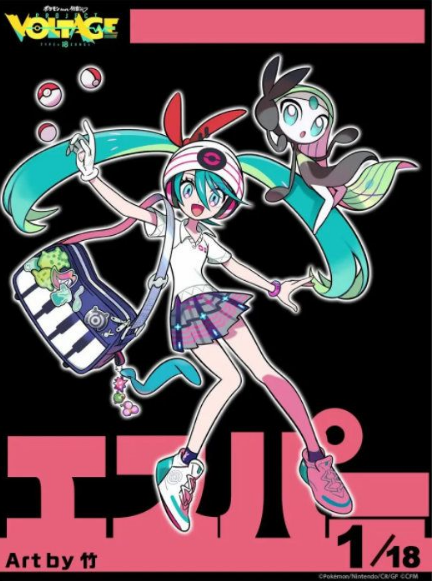 注意:初音未来×【宝可梦】联动第一弹插图公开,是由 竹 绘制的 初音未来训练家+梅洛耶塔;