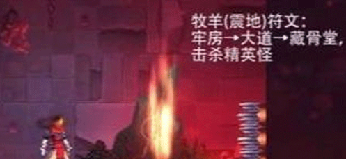 1、我们按照“被囚者牢房-有罪者大道-藏骨堂”的路线,在藏骨堂中找到精英怪获取震地符文。