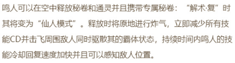 携带专属秘卷:“解术·复”时其将变为“仙人模式”。