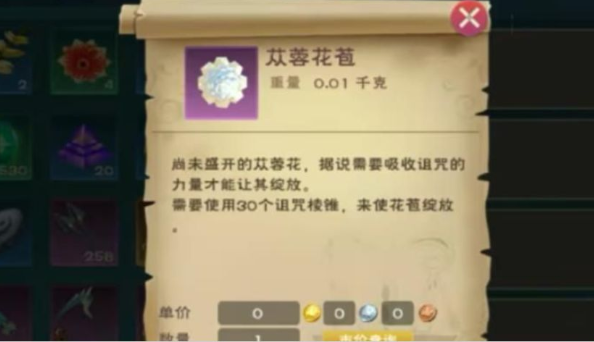 2、一旦玩家找到了苁蓉花苞,进入沉沙神殿后取出背包中的30个诅咒棱锥,将其用于苁蓉花苞上。