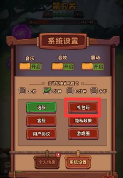 3、在系统设置页面中找到下方的【礼包码】按钮,点击进入礼包兑换页面。