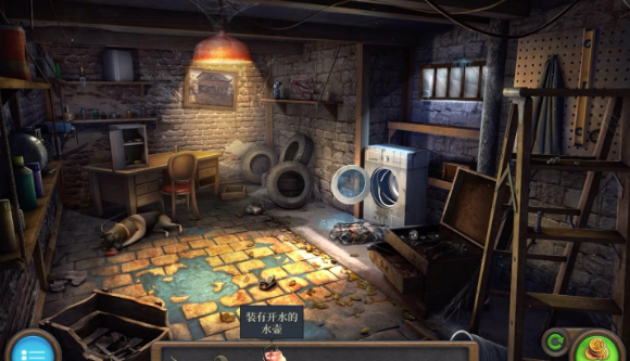 13、回到有鸟笼的庭院,点击右侧的水井,将【手柄】和【空的大锅】安装于水井上,得到【锁匙】和【茶壶】。