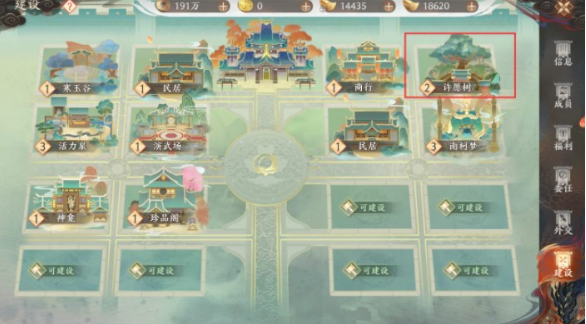 许愿树建筑等级越高,许愿宝箱奖励越丰厚! 快让帮会管理者升级建筑吧!