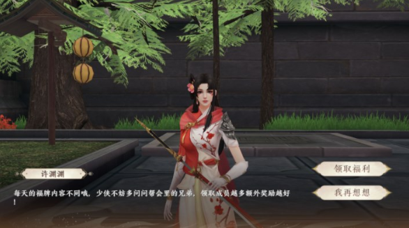 许愿树宝箱领取时,需要翻出正确的“福牌”,每天帮会里随机两种门派的少侠或女侠知晓正确的福牌,少侠可在帮会频道发起询问。获得好心人的告知帮助后不要忘记道谢哟!