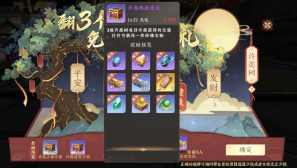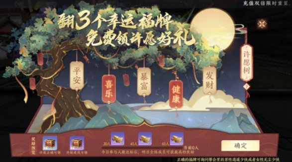 进入领取界面,正确选择【3个幸运福牌】-【确定】后即可许愿成功。