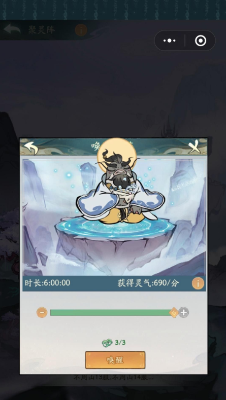 2、不管有没有唤醒灵阵,都可以去聚灵阵,放分身到别人家修炼。根据主人的境界不同获取主人一半的修炼值,另外仙官称号的人有额外加成,分会更多。推荐有仙官去仙官,没仙官去真仙,都没有就找大乘。派分身修炼前30分钟是保护期,过了以后没放分身的人可以打你抢位置,反之同理。自己做主人时也可以放分身出去修炼,但每次只能放一个分身修炼,对方地盘修炼时间结束自动回收分身,所以要选好地。
