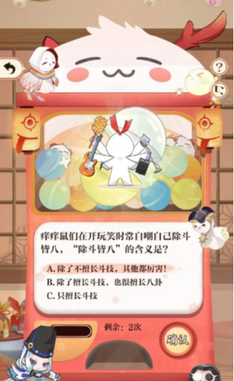 5、痒痒鼠们在开玩笑时常自嘲自己除斗皆八,“除斗皆八”的含义是?【除了不擅长斗技,其他都厉害】