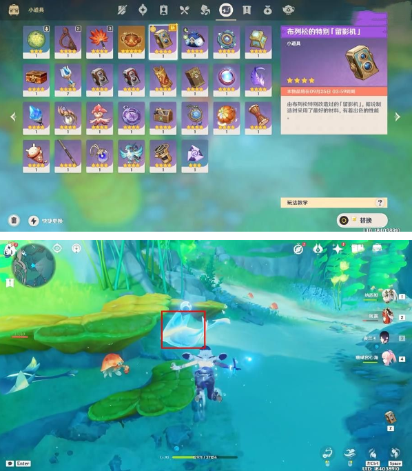 2、我们到达目的地之后,就可以使用到留影机来进行记录第一个异色原海异种。