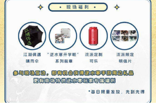 现场福利:定制雨伞、系列徽章、定制可乐以及定制明信片;