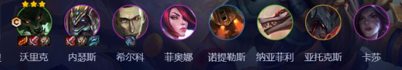 沃里克、内瑟斯、希尔科、菲奥娜、诺提勒斯、纳亚菲利、亚托克斯、卡莎。